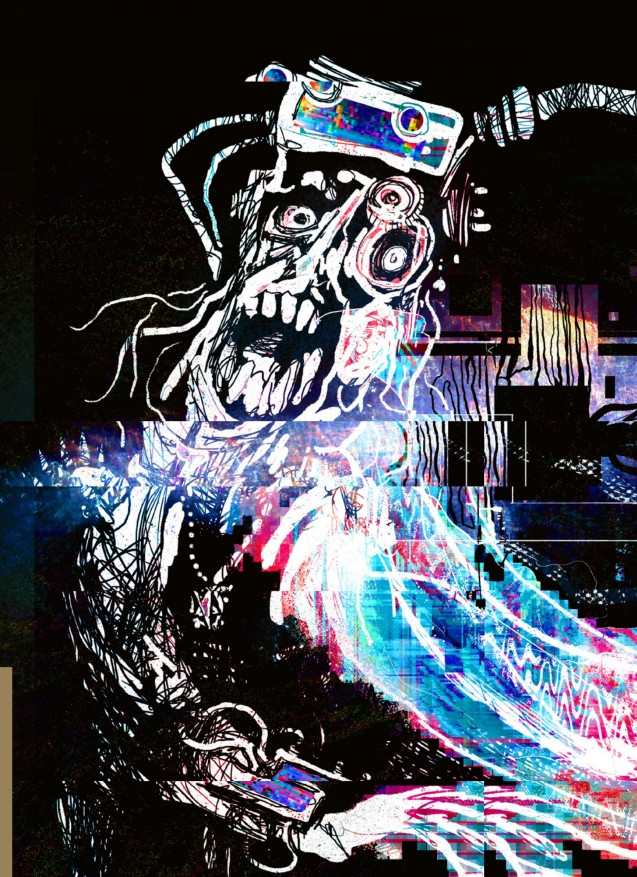 Самый яркий пример - это УРС, Устройство Ретинальной Связи, смесь из мобильника, VR и AR, встроенная в голову каждого человека. Это буквально гротеск на тему соцсетей и мобильных устройств, причём сильно влияющий на игровой процесс. На моих играх персонажи активно используют соцсети, заливают мемные видео и даже стримят штурм корпоративной лаборатории. Они плавают в хтоническом океане информации, где словить рекламную бомбу или найти QR-код на снафф-видео — ещё не самое страшное. Словом, грамотное осмысление современных технологий массовой связи и их вплетение в игровой процесс